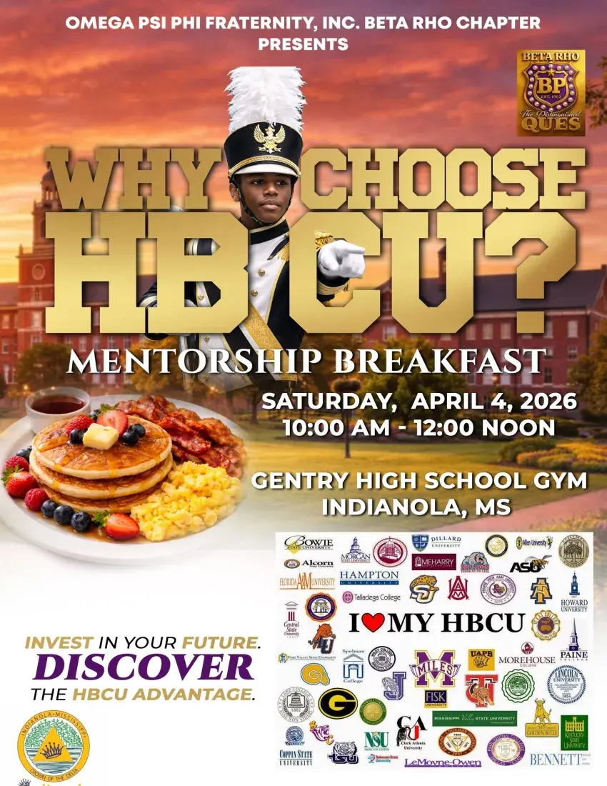 The Beta Rho Chapter of Omega Psi Phi Fraternity, Inc. will host a mentorship breakfast aimed at educating high school students about the value and legacy of historically Black colleges and universities (HBCUs).