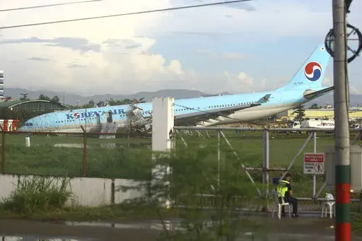 MANILA, Philippines (AP) — Philippine authorities allowed a major airport to partially reopen to international and domestic flights Tuesday despite the damaged Korean Air plane stuck in the grass near the runway after a near-tragic accident over the weekend.