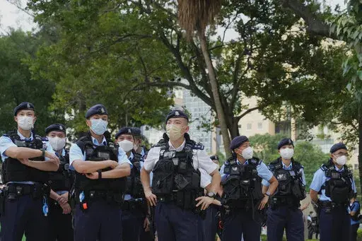 HONG KONG (AP) — Heavy police force patrolled Hong Kong’s Victoria Park on Saturday after authorities for a third consecutive year banned public commemoration of the anniversary of the deadly Tiananmen Square crackdown in 1989, with vigils overseas the only place marking the event.