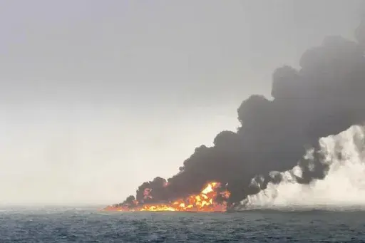 U.S.-based maritime management firm Crowley, which operates the Stena Immaculate, said the tanker “sustained a ruptured cargo tank containing Jet-A1 fuel,” when the container ship struck it, triggering a fire and “multiple explosions onboard,” with fuel released into the sea.