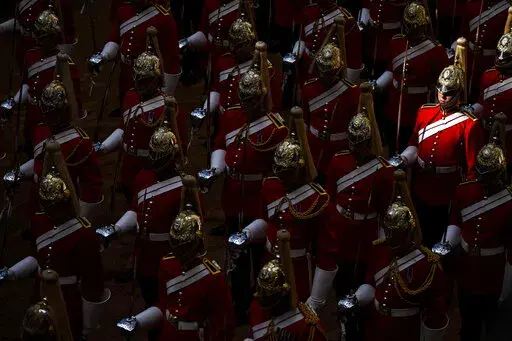 Two officers and 32 troops from the 1st Battalion Grenadier Guards in red uniforms and bearskin hats walked on either side of the gun carriage. The 38-minute procession ended at Westminster Hall, where Archbishop of Canterbury Justin Welby led a service attended by Charles and other royals.