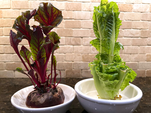 Cut 3 inches off the bottom of a head of romaine lettuce, then remove its outermost leaves. Place the 3-inch “heart” in a shallow container to which you’ve added one-half inch of water. Within a week, a sprout will emerge from its center. As it grows, it’s normal for some of the heart’s outer leaves to turn brown. Remove them. When the center growth is large enough for a salad (or sandwich), trim it off and enjoy – then wait for more to grow.
