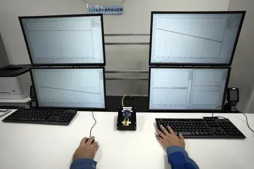 OKUMA, Japan (AP) — At a small section of the Fukushima Daiichi nuclear plant’s central control room, the treated water transfer switch is on. A graph on a computer monitor nearby shows a steady decrease of water levels as treated radioactive wastewater is diluted and released into the Pacific Ocean.