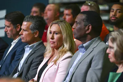 WASHINGTON (AP) — Marjorie Taylor Greene took her seat directly behind Republican House leader Kevin McCarthy, a proximity to power for the firebrand congresswoman that did not go unnoticed, as he unveiled the House GOP's midterm election agenda in Pennsylvania.