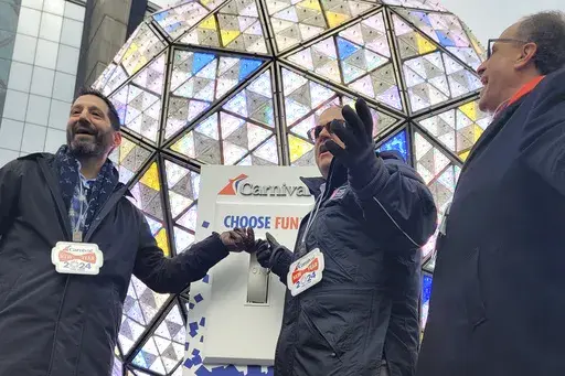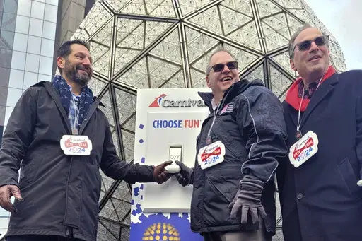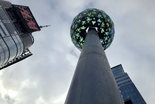 NEW YORK (AP) — The confetti has been tested for airiness. The giant numerals – 2 0 2 4 – are in place. And the luminous ball, bedazzled with 2,688 crystal triangles, is fixed to the pole from which it makes its 60-second descent at 11:59 p.m.