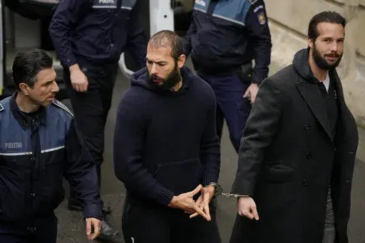 Tate, 36, a British-U.S. citizen known for misogynistic views who has 5.2 million Twitter followers, arrived at the Bucharest Court of Appeal handcuffed to his brother Tristan, who is held in the same case.