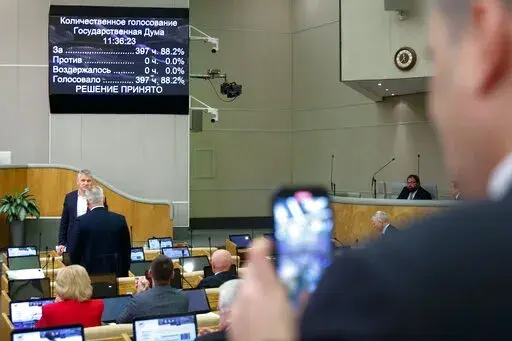 The bill was approved in the third and final reading on Thursday by the State Duma, the lower house of parliament. It will go next to the upper house, the Federation Council, and then to President Vladimir Putin, whose signature will give it legal force.