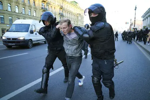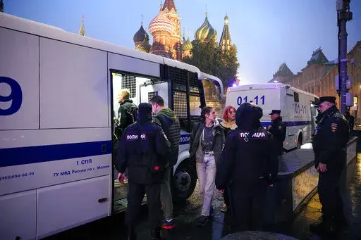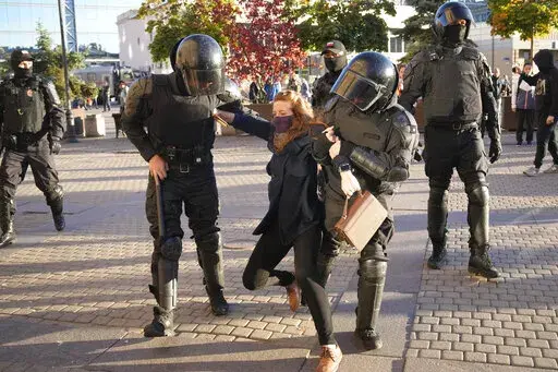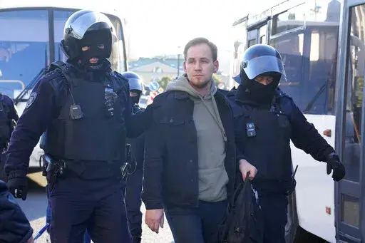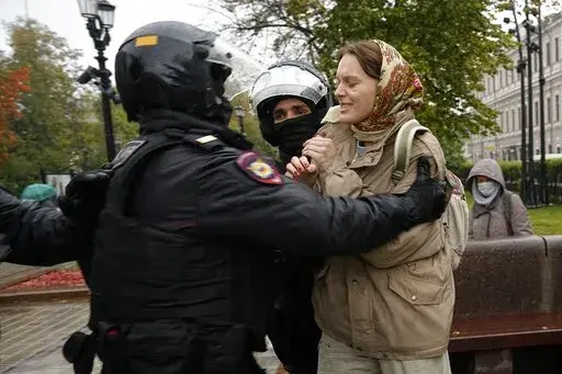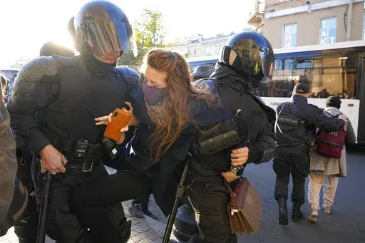 MOSCOW (AP) — Russian police moved quickly Saturday to disperse peaceful protests against President Vladimir Putin's military mobilization order, arresting hundreds, including some children, in scores of cities across the vast country.