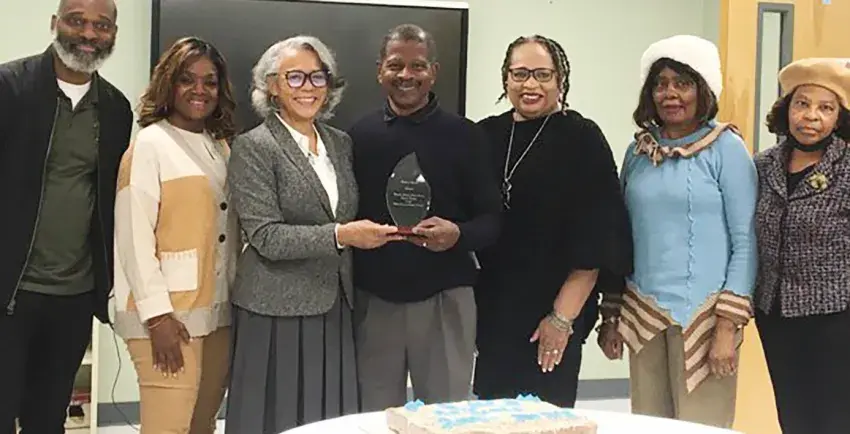 The Restoration Ministries Christian Academy board of directors presented Pastors Michelle and Richard Jenkins with a certificate and a plaque commemorating the school’s 20th year in existence. Making the presentations were Mr. Christopher Howard, Dr. Ivy Anderson, Dr. Peggy A. Buckner, Mrs. Lottie Clay, and Mrs. Jeanette Bolden. Photo for The E-T