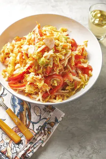 Asian slaws are also popular, usually made with a dressing that includes oil and vinegar blended with ingredients like soy sauce, sesame oil, scallions, ginger and cilantro. In Southeast Asian cuisine, shredded vegetable salads might include green papaya and fish sauce.