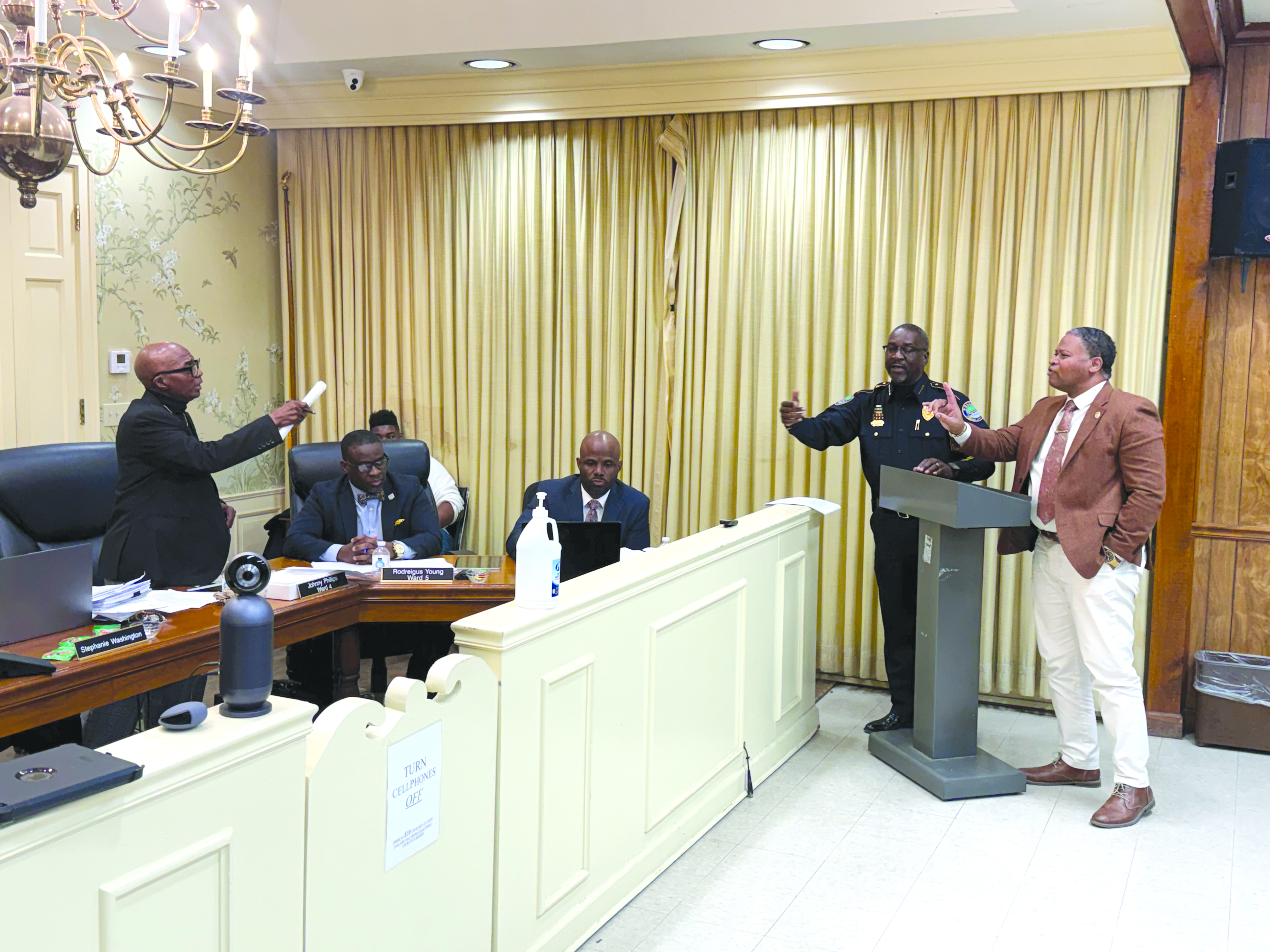 The meeting also featured a confrontation that led to NAACP’s Modley’s removal from the chamber.