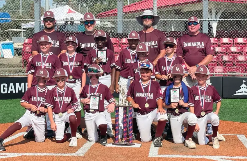 The Indianola 8U All-Stars placed third of 14 teams in the World Series in Southaven last week. From top left are Coaches- Andy Jones, Jarrett Carman, Watson Cook and Paul Baker. Middle row from left- William Cook, Cooper Harrell, Carlandon Neal, Jeremiah Kent, Easton Baker and Elliot Jones.