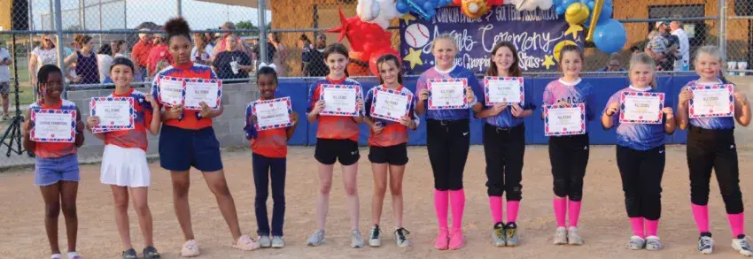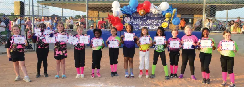 Pictured from left are Anna-Riffey Grisham, Nola Peaches, Egypt Hunter, Nola Peaches, Madalyn Misskelley, Nola Peaches, Shelby Hawkins, Nola Peaches, Ralyn Briscoe, Nola Peaches, Paulinna Guillen, Strikers, Brooklyn Cartlidge, Delta Spirits, Laken Lawrence, Diamond Heat, Allison James, Delta Spirits, Raylee Triplett, Pink Ladies, Lainey Stigall,