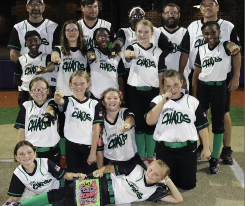 Cleveland Chaos 10U took home a tournament victory this past week. Players from indianola include Allison James, Mya Johnson and Anna-Riffey Grisham, who won the MVP of the tournament. In back, from left are Kevin Roach, Stephen Grisham, Ivy Freeman, McKinley Misskelley and Joe Jenkins. Second row from the back, from left are Allison James, Madalyn Misskelley, Mya Johnson, Mollie Powers and Khloe Williams. Third row from top are Addalyn VanGorder, Preslee Turner, Anna-Riffey Grisham and Lyla Burnham. Last row, Waverly Roach and McKenzie Jenkins.