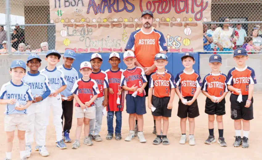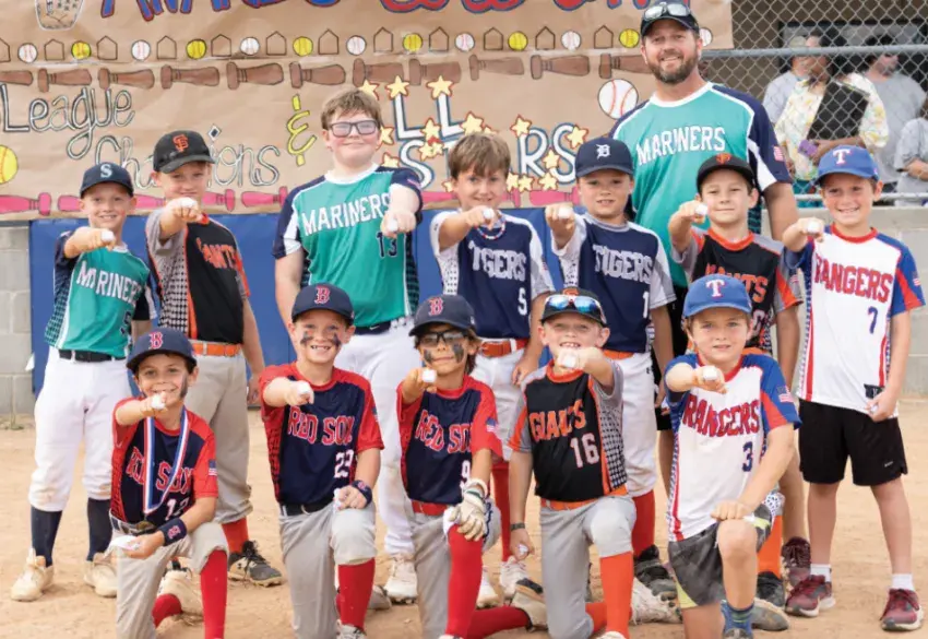Pictured are the 8U boys All-Stars standing, Ethan Jones, Henry Skelton, John Phillip Liddell, Lawson Casavechia, Hudson Montesi, Luke Smith, Hayden Wolford. Kneeling are Lucas Brown, Rowland Turnman, Robert Prather, Isaac Harrell and Riley Tharp. In back is coach Andy Jones.