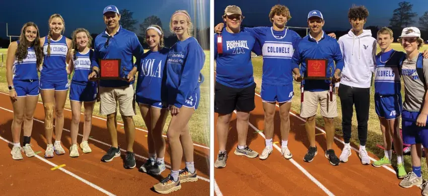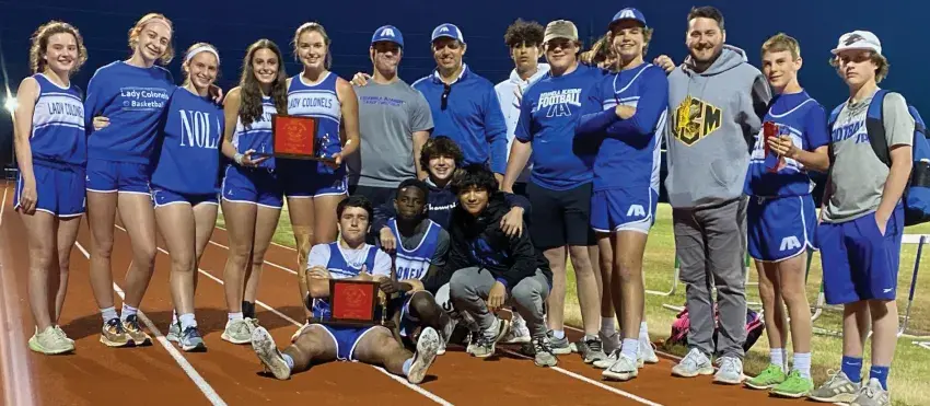 Indianola Academy’s junior varsity track teams recently participated in the district track meet. Pictured after the meet, from left and in back are Vivian Baird, Emeline Beilmann, Carlyle Reed, Mae Veazey, Kelly Arrington, Easton Lloyd, Coach Shan Right, Isaiah Morgan, Joseph Roberts, Levi Morgan, Ty Killebrew, Coach Cole Devazier, Levi Williamson and Nichols McCrory. In front are Patrick Davis, Ryan Cooperwood, Carson Purvis and Ethan Hayes.