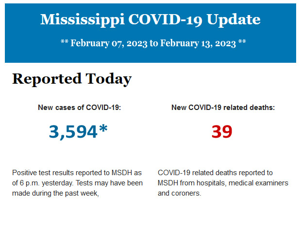 *New COVID-19 positive test results reported to MSDH for February 07 - February 13.