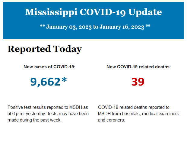 *New COVID-19 positive test results reported to MSDH for January 03 - January 16.