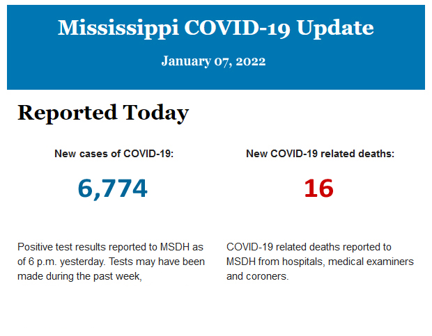 Listed below is the daily COVID-19 update for the state of Mississippi.
