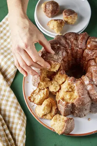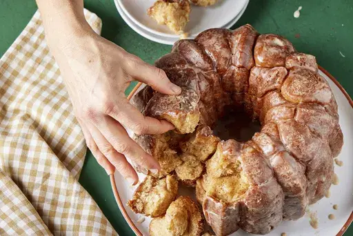 The optional brush-on glaze gives the monkey bread a lustrous finish and a crackly coating — like a glazed doughnut — but feel free to skip it.