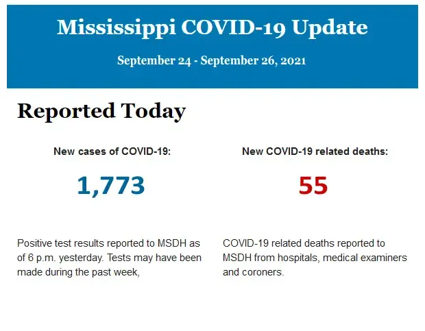 Listed below is the daily COVID-19 update for the state of Mississippi.