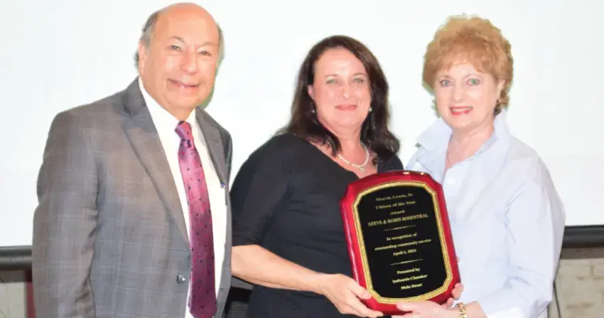 Indianola Chamber Main Street handed out its biggest awards to business and civic leaders during this past Monday night’s annual Mixer. Petal Pushers took home the prestigious Business of the Year award. Pictured left, from left, are 2023 Chamber President Will McDowell, Pat Ellis, Corey Smith and Lauren Strowd.