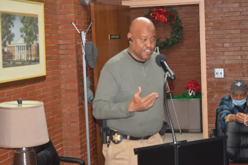 Sunflower County Sheriff James Haywood provides a rationale for requesting an additional staff member during the Board of Supervisors meeting on Monday. Haywood also explained some of the medical issues that nurses encounter while treating inmates at the county jail.