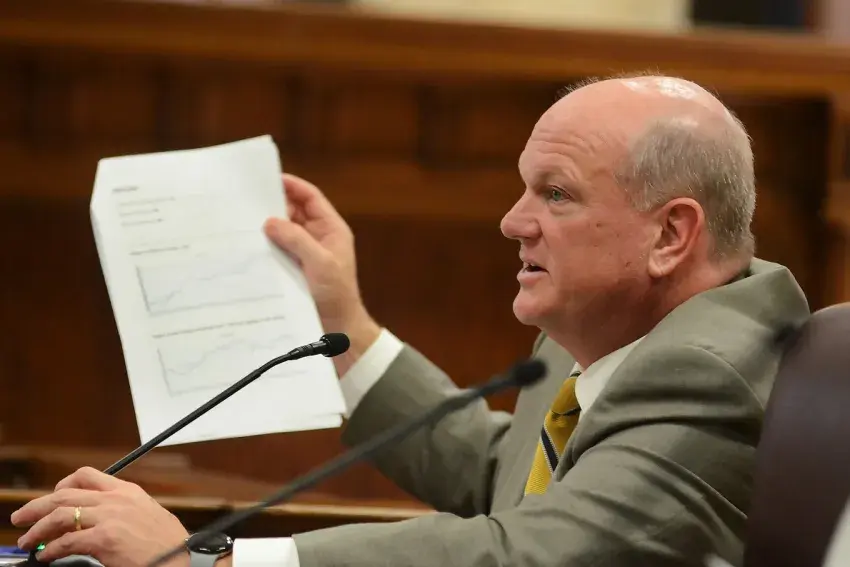 Sen. Brice Wiggins, R-Pascagoula, poses a questions to Mississippi Department of Child Services Commissioner Andrea Sanders, during a study group on women, children and family, held at the State Capitol, Wednesday, Oct. 2, 2024 in Jackson. Credit: Vickie D. King/Mississippi Today