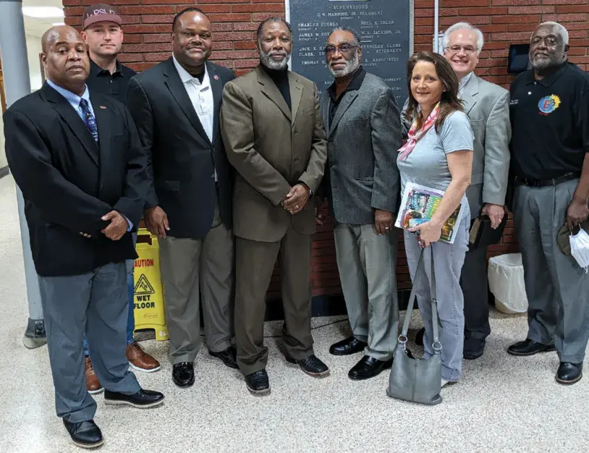 Local pastors and board members of Sunflower County Ministerial Alliance & Counseling Services were on hand this past Monday as State Rep. Otis Anthony (House District 31) announced the securing of $300,000 from the Legislature this past session to go toward building the planned transitional facility. Pictured are Dr. Adrian Brown, Rev. Matthew Morgan, Anthony, Rev. Phillip McGee, Indianola Alderman Marvin Elder, Debbie Hoopes, Rev. Duncan Hoopes and Rev. Edward Thomas.