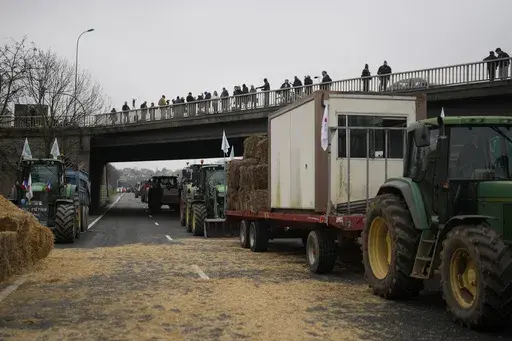 HALLE, Belgium (AP) — Farmers blocked more traffic arteries across Belgium, France and Italy on Wednesday, as they sought to disrupt trade at major ports and other economic lifelines. They also moved in on Brussels on the eve of a major European Union summit, in a sustained push for better prices for their produce and less bureaucracy in their work.