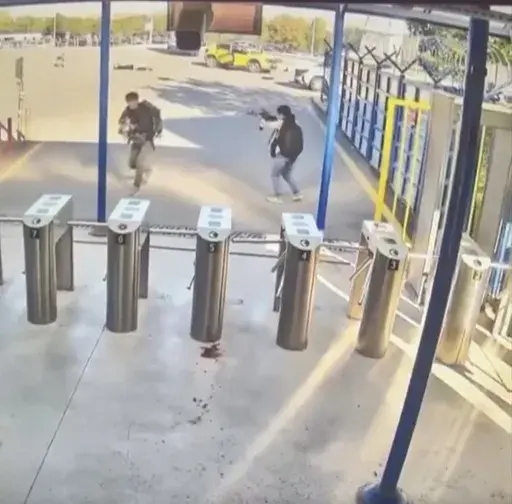 Security camera images, aired on television, showed a man in plainclothes carrying a backpack and holding an assault rifle.