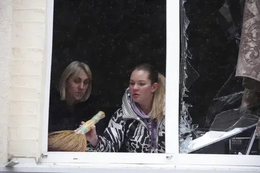 On the battlefield, Kharkiv regional governor Oleh Syniehubov said four people were injured Sunday when a Russian S-300 missile fell near an apartment block in Kharkiv city, and another was hurt when a missile hit a university building. Video showed the building hit was the National Academy for Urban Economy, about 700 meters from the city's central square.
