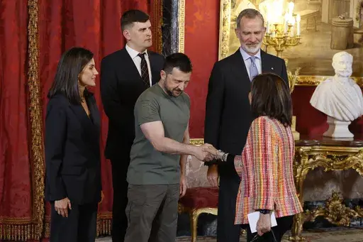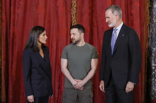 Spain’s King Felipe VI earlier welcomed Zelenskyy at the capital’s Barajas airport. Zelenskyy was due in neighboring Portugal on Tuesday.