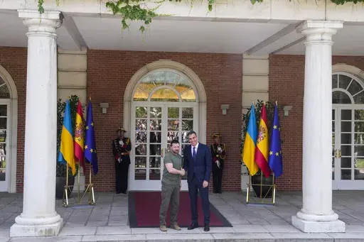 MADRID (AP) — Ukrainian President Volodymyr Zelenskyy on Monday secured from Spain a pledge of additional air defense missiles to help fight the about 3,000 bombs that he says Russia launches every month at Ukraine in the third year of the war.