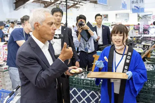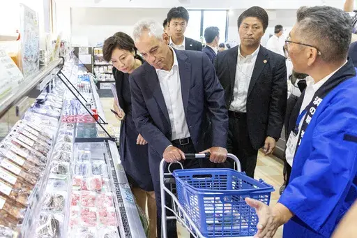 TOKYO (AP) — The U.S. ambassador to Japan visited a city in Fukushima on Thursday and had a seafood lunch with the mayor, talked to fishermen and stocked up on local produce to show they are safe after the release of treated radioactive wastewater from the wrecked Fukushima nuclear plant into the sea, backing Japan while criticizing China's ban on Japanese seafood as political.