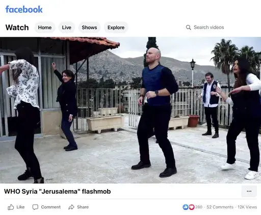 Multiple videos show staffers, some wearing WHO vests or jackets, performing “ the Jerusalema challenge” dance in offices and warehouses stocked with medical supplies. Magtymova praised the “very good looking and beautiful people” in videos made in Aleppo and the port city of Latakia.